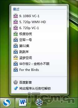 不過百度影音對于Win7特性的支持還不是很高,目前僅提供了Jumplist菜單和AeroSnap的簡單支持,而對于Jumplist快捷操作以及任務(wù)欄實時縮略圖卻沒有提供。