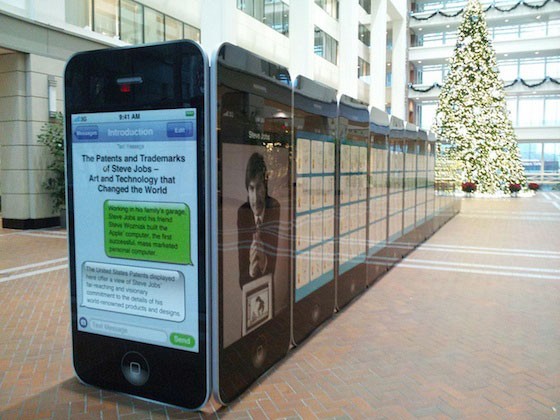 此次紀(jì)念展地點(diǎn)選在弗吉尼亞州亞歷山大市,美國專利商標(biāo)局麥迪遜大樓中庭的發(fā)明家名人堂博物館內(nèi),由非盈利機(jī)構(gòu)Invent Now構(gòu)思。展覽包括30張iPhone形狀的展板,展板記錄了喬布斯的300多項(xiàng)專利和商標(biāo)以及喬布斯的照片和個(gè)人信息。