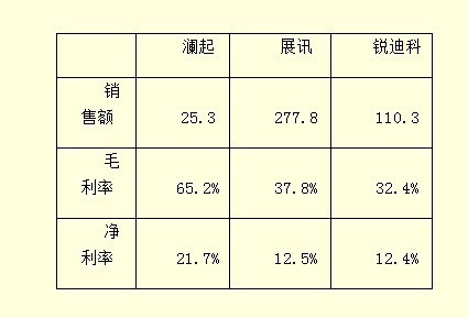 銳迪科是國內(nèi)芯片設計公司中少有的技術全面、產(chǎn)品廣泛的公司。產(chǎn)品線布局之寬在中國公司中絕對是鳳毛麟角,從FM,PA,Tuner,RF,藍牙到基帶可以說“無所不有”;而針對的市場則是機頂盒、電視機、手機也是“無所不在”。并且在擁有了足夠多的產(chǎn)品之后,在供應商面前的議價能力大大加強,反過來進一步保證了產(chǎn)品在價格戰(zhàn)中的優(yōu)勢。