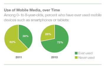 0-8歲兒童中使用移動(dòng)設(shè)備的人數(shù)比例從2011年的38%升至2013年的72%