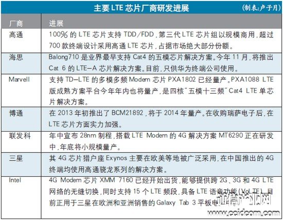 在殘酷的市場(chǎng)競(jìng)爭(zhēng)下,到了LTE時(shí)代,涉足芯片的廠商已經(jīng)越來(lái)越少。而對(duì)于產(chǎn)業(yè)鏈相對(duì)薄弱的TD-LTE來(lái)說(shuō),芯片廠商的支持就彌足珍貴。目前,已經(jīng)有17家芯片廠家已經(jīng)推出或正在研發(fā)LTE TDD/FDD融合多模芯片,高通、海思、Marvell等廠商已經(jīng)推出五模芯片。
