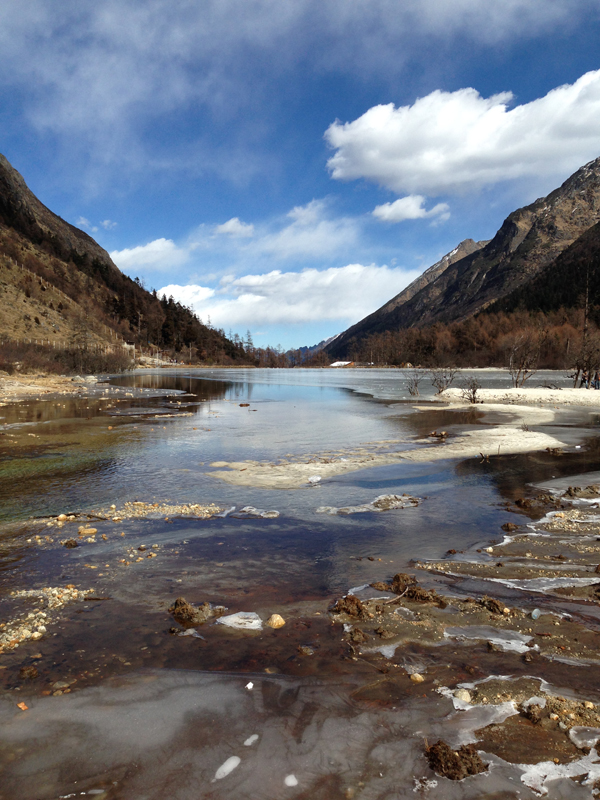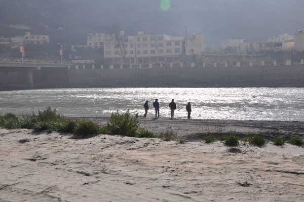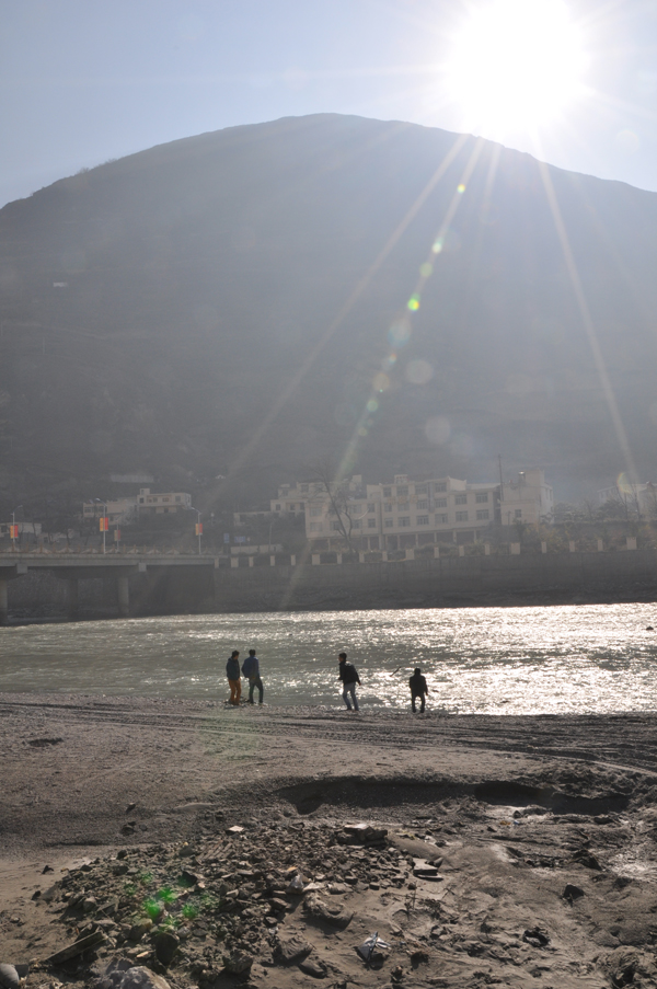 陽光明媚,讓在成都霧霾天氣下待久了的我們瞬間雀躍起來,途中經(jīng)過一條不知名的河流,大家高興的玩了起來~~~