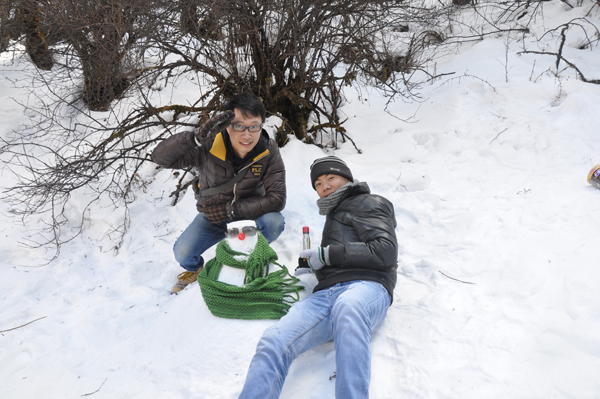 到了雪地里,當然少不了堆雪人啦,大家正在合作堆雪人呢~~~