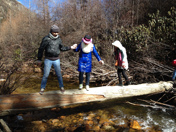 過獨木橋,同事們互相攙扶著,多有愛啊~~~