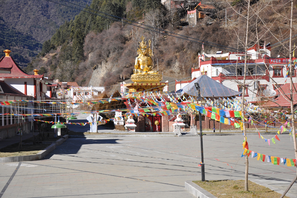 由于時間還早,我們決定先去米亞羅景區(qū),初冬的天氣已然看不到紅葉了,但是金燦燦的大佛,隨風飄動的經(jīng)幡,讓我們感受到了異域文化。