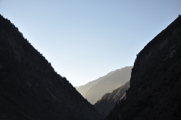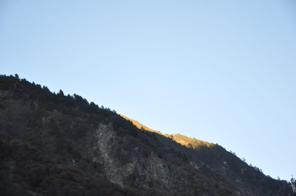 驅車到達畢棚溝溝口,群山在夕陽的余暉下,顯得甚是美麗。