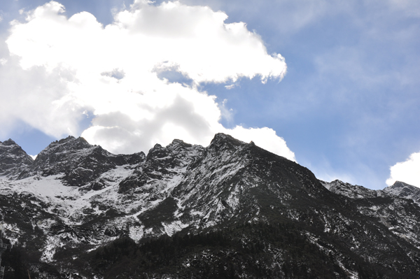 藍天白云下,巍峨的雪山,顯得如此的神秘。