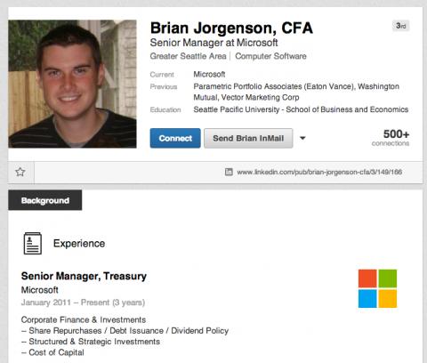 據(jù)《西雅圖時(shí)報(bào)》稱,喬根森曾在微軟供職三年,年薪13萬美元,任財(cái)政部門高級(jí)經(jīng)理。他從事內(nèi)幕交易一事在上個(gè)月曝光,隨后被微軟解雇。