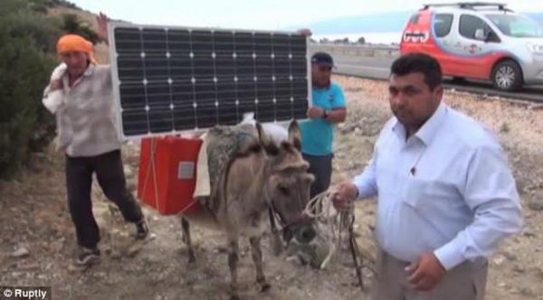 土耳其農(nóng)夫在驢背上放置太陽(yáng)能電池板,在放牧?xí)r可采集太陽(yáng)能為隨身攜帶的筆記本電腦和手機(jī)充電。