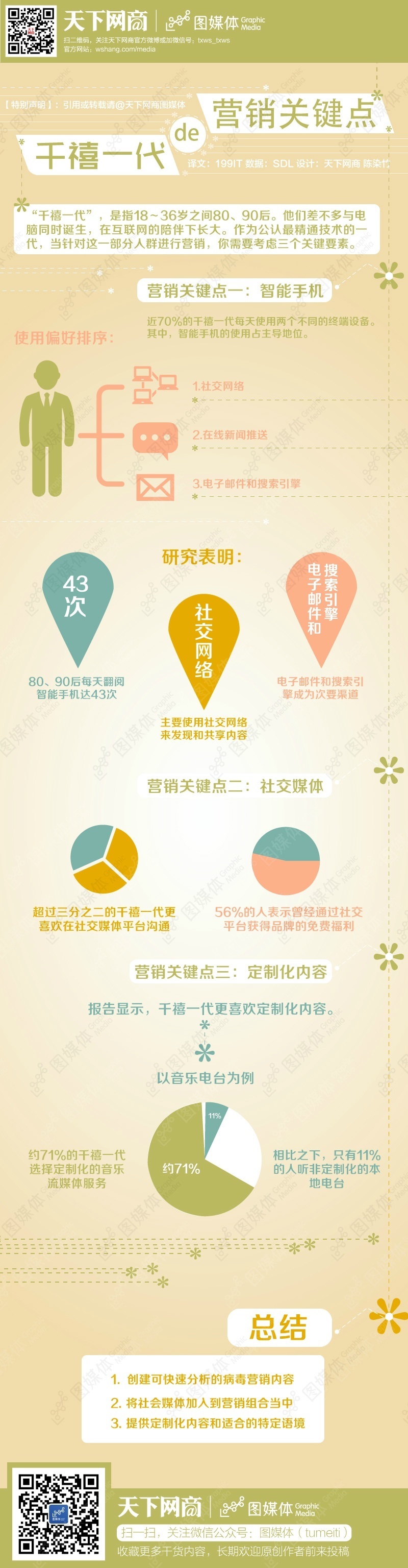“千禧一代”是指18~36歲之間80、90后。他們差不多與電腦同時(shí)誕生,在互聯(lián)網(wǎng)的陪伴下長大。針對(duì)這一部分人群進(jìn)行營銷,你需要考慮三個(gè)關(guān)鍵要素:智能手機(jī)、社交媒體和定制化內(nèi)容。