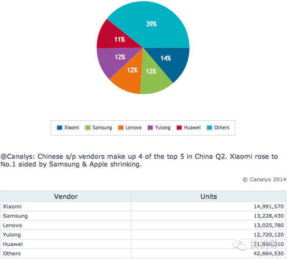 最近 Canalys 公布了一個(gè)有關(guān)中國(guó)智能手機(jī)市場(chǎng)狀況的調(diào)查,結(jié)果顯示在 2014 年 Q2 里,賣(mài)得最多手機(jī)的頭五位里,有四間都是大陸公司,分別是小米、聯(lián)想、酷派和華為,當(dāng)中小米排第一,而唯一的外國(guó)公司就是排在第二的三星,驚喜的是蘋(píng)果竟被它們擠到五甲之外呢。