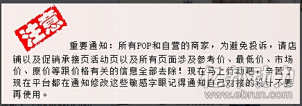 據(jù)商家爆料,收到工商總局消息不僅僅是京東,包括天貓在內(nèi)的多家電商平臺均在列。“剛剛接到小二通知,所有雙11活動頁面不能出現(xiàn)‘參考價’‘吊牌價’‘原價’‘折扣’這樣的字樣,二期今天18點之前必須全部修改好。”某箱包B2C官網(wǎng)電商負(fù)責(zé)人表示。