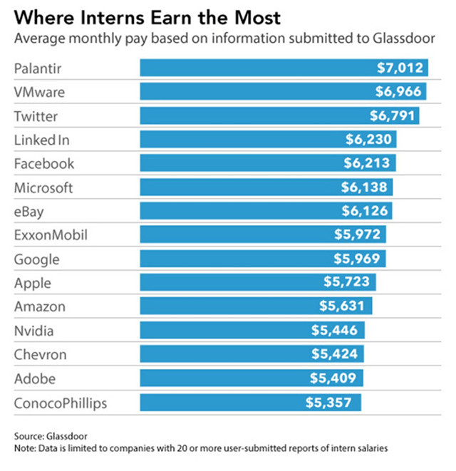 硅谷實(shí)習(xí)生月薪曝光:Facebook 6213美元,蘋果9223美元