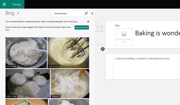 微軟今早宣布了一項Sway中的新功能,那就是內嵌的必應圖像搜索功能,以便于用戶輕松創(chuàng)建內容。不僅如此,該公司還利用到了機器學習技術,使得相關圖像的搜索速度更快。目前Sway仍處于預覽階段,該平臺正在演變,并且會在完成之后,于Office套件中扮演一個全新的角色。