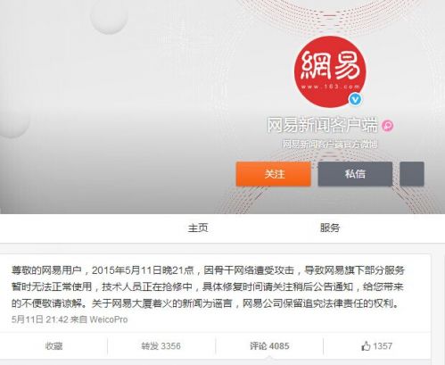 網(wǎng)易回應(yīng)服務(wù)器癱瘓:骨干網(wǎng)絡(luò)受攻擊正搶修
