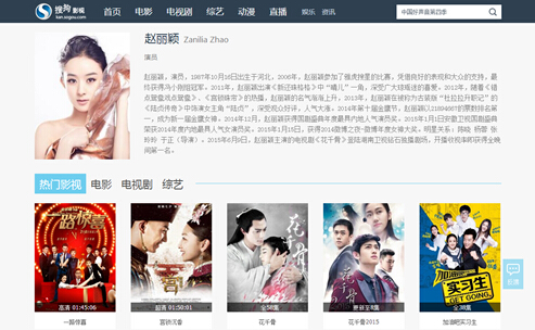 所謂影視明星頁,是搜狗網(wǎng)址導航以明星為核心,對龐雜的娛樂信息、影視資源進行重新匯聚、整合,為用戶打造出的一站式明星攻略。對粉絲來說,喜歡一個偶像,就會瘋狂愛上ta的一切,看完ta的電影,還希望看到ta的電視劇,看完ta演戲,又會渴望看到ta在綜藝節(jié)目里耍寶賣萌。想用戶所想,“明星頁”所滿足的,正是粉絲們的這一基本需求。點擊進入明星頁,你所喜愛的明星的個人信息,主演、參演的影視劇、綜藝節(jié)目,一網(wǎng)打盡,滿滿屏幕都是不一樣的ta,想看哪個點哪個,再也不用大海撈針一般在各種視頻網(wǎng)站和頻道之間切換啦。
