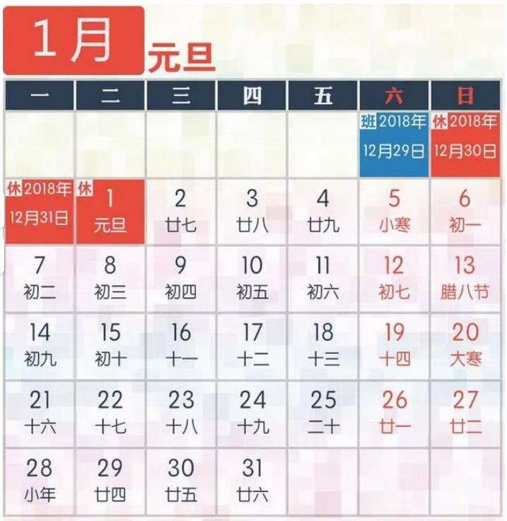 2019元旦放假時間安排