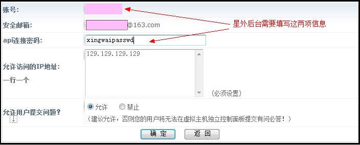 2、點(diǎn)擊左側(cè)的“代理商管理”——“API接口配置”,設(shè)置好您的接口用戶(hù)名和密碼,允許訪問(wèn)的IP地址填寫(xiě)您的星外系統(tǒng)主控服務(wù)器的IP.如圖:
