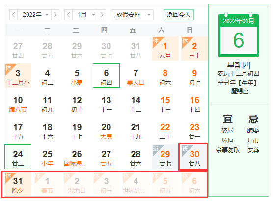 調(diào)休安排:2022年1月29日(星期六)上班。